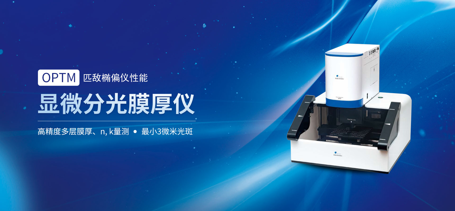 ● 非接触 · 非破坏 · 显微、对焦、测量1秒完成 ● OPTM系列显微分光膜厚仪是一款可替代椭偏仪,测试膜厚、折射率n、消光系数k、绝对反射率的新型高精度、高性价比的分光膜厚仪。